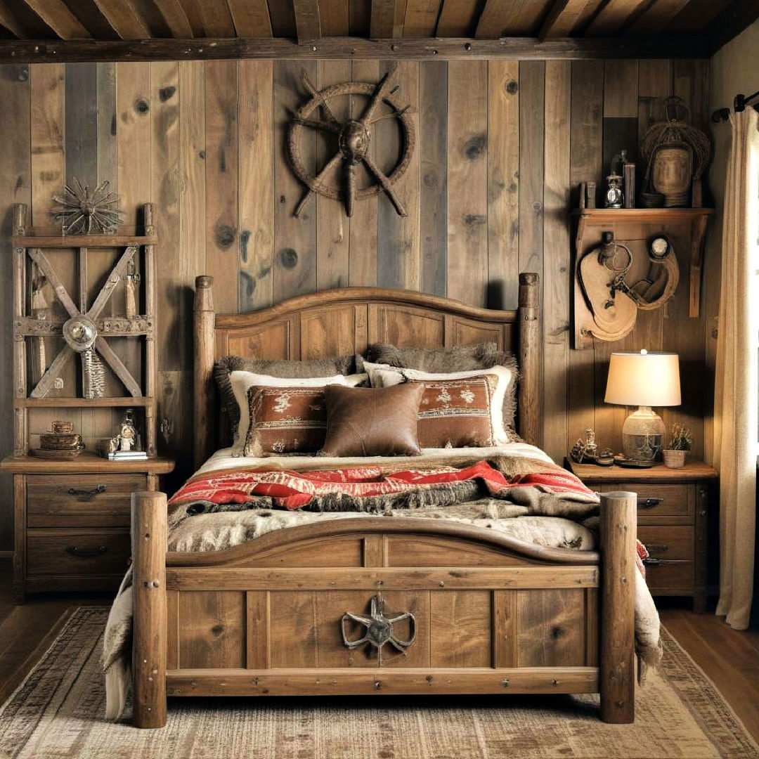 Timeless rustic elegance is the hallmark of a well-crafted cowboy-themed space. By embracing the beauty of weathered wood finishes, you can transport the raw, earthy essence of the Old West into your home. From bed frames to shelving units, opt for rustic wood furniture that celebrates imperfections, making each piece feel unique and full of character.