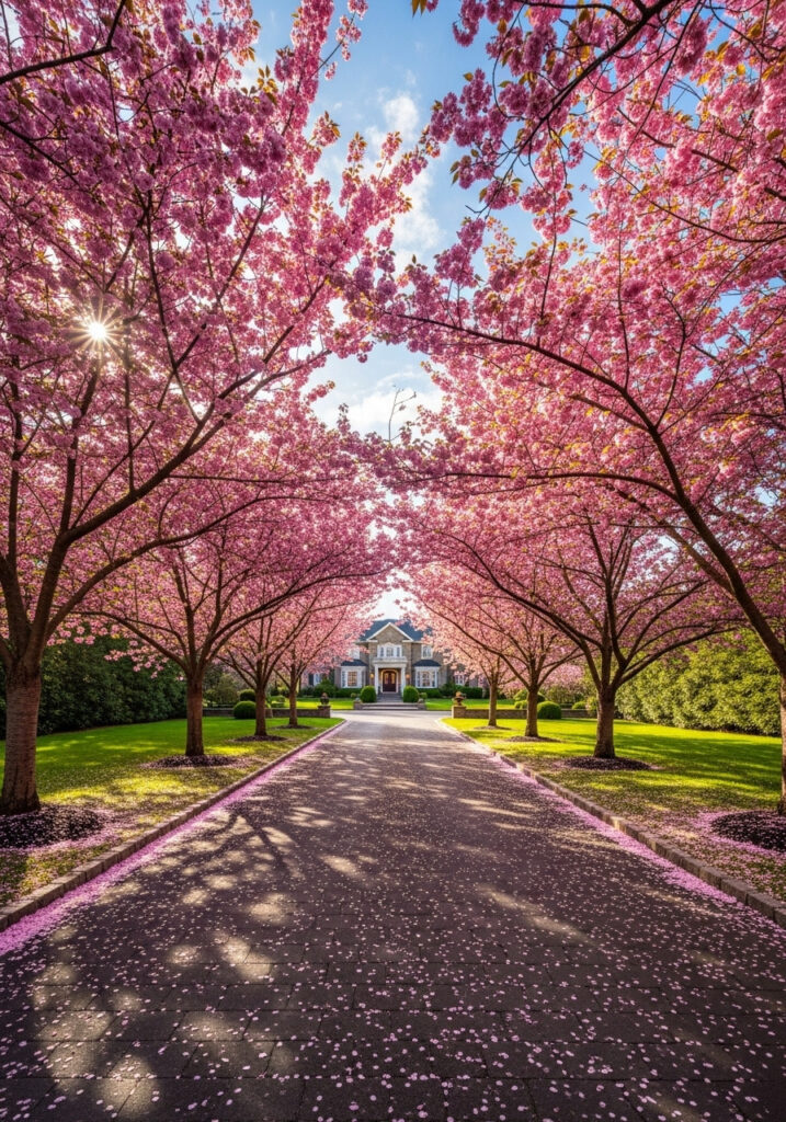 Placing ornamental trees at intervals along a driveway creates rhythm, height, and seasonal beauty. Options like dogwoods, cherry blossoms, or crape myrtles bring stunning blooms in spring and summer, while maples or birches offer fiery fall foliage. The trees also provide shade for parked cars.