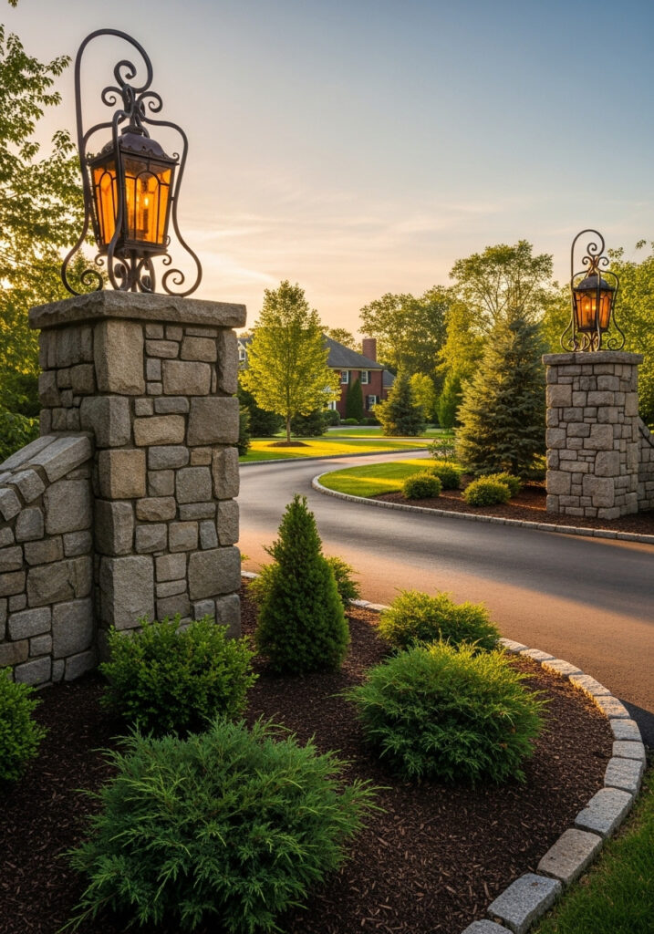 Stone or brick pillars at the driveway entrance create a grand impression. They can hold lanterns, house numbers, or even a gate. Matching materials to your home’s exterior ties the entire design together, creating continuity.