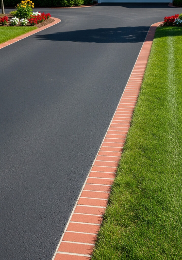 Edging defines the driveway and prevents grass from creeping onto the pavement. Materials like brick, stone, or metal add clean lines. Choosing a contrasting color emphasizes the shape of the driveway and gives it a finished appearance.