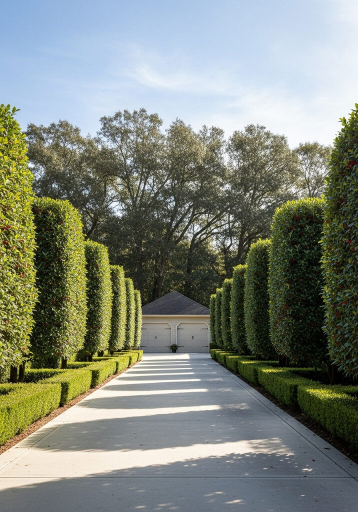 Low hedges along a driveway offer neatness and structure without overwhelming the view. Boxwood, privet, or dwarf holly are classic choices that can be trimmed into tidy lines. Their evergreen foliage keeps the driveway looking vibrant year-round while guiding cars smoothly toward the home.