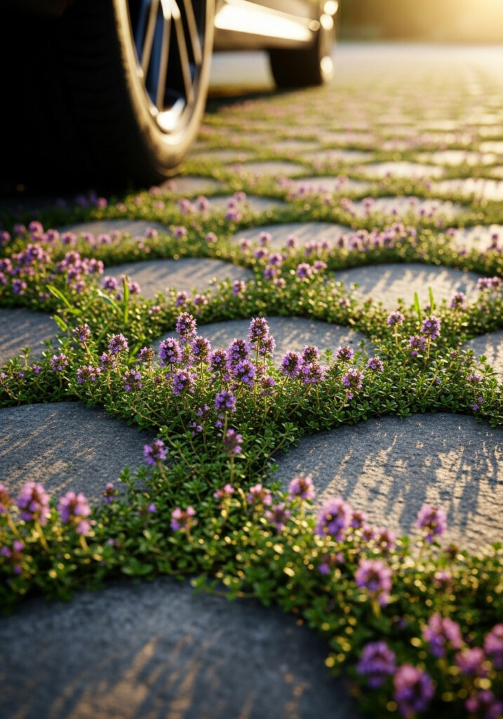 For driveways with pavers or stepping stones, planting groundcovers between joints adds charm. Creeping thyme, moss, or sedum soften hard surfaces while tolerating light foot or tire traffic. They also prevent weed growth and erosion.