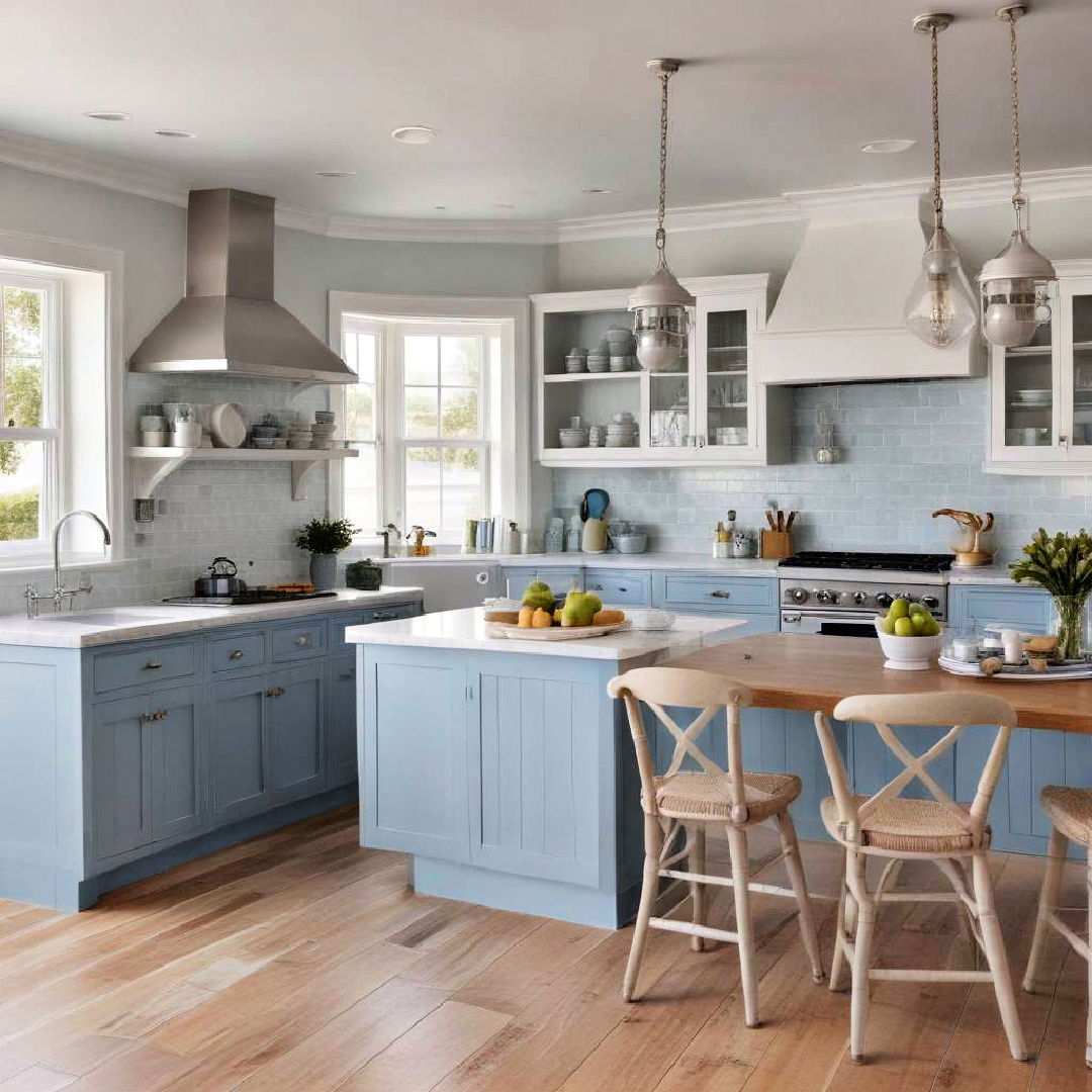 An indoor herb garden is a practical and visually appealing element that can bring a fresh, green essence to your coastal kitchen. By growing your own herbs, you can easily incorporate them into recipes and enjoy the benefits of homegrown produce. The contrast between the lush greenery and the soft coastal color palette creates a beautiful visual harmony.