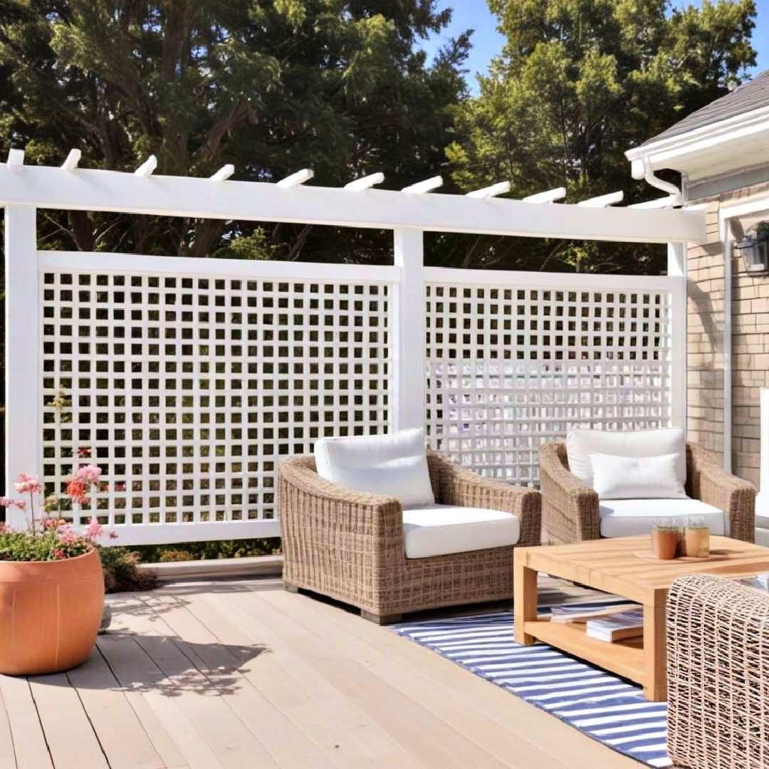 Latticework panels bring a touch of whimsy to your deck, delicately balancing functionality and aesthetics. These intricate structures filter sunlight, creating a warm ambiance while maintaining seclusion. With a variety of designs and installation options available, latticework panels can be easily integrated into your outdoor space, beautifully elevating its charm.