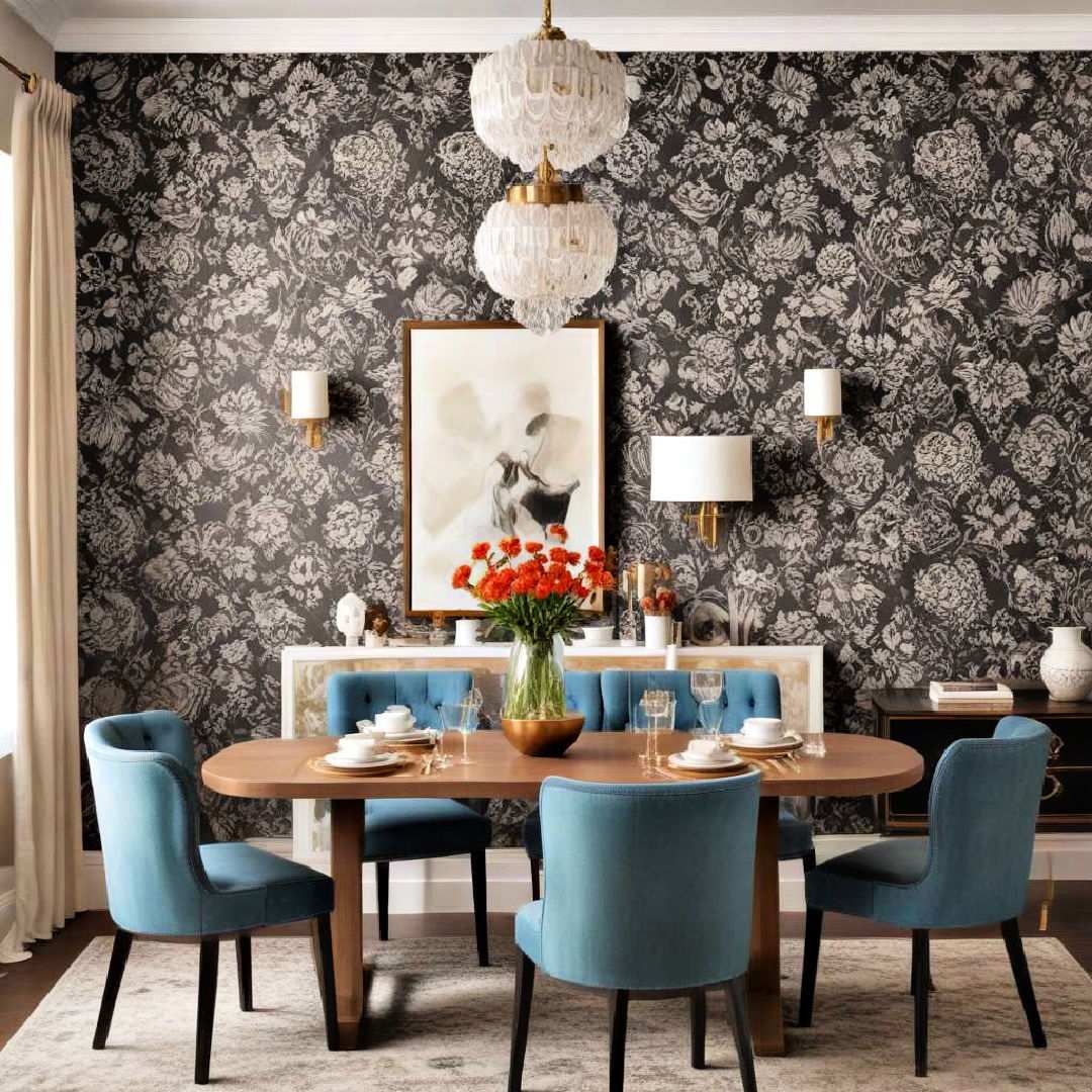 A well-chosen wallpaper design can single-handedly transform a dining room into an inviting space that reflects your personal taste. Among the numerous options available, bold patterns take center stage, injecting both personality and depth into the room. Select a design that harmoniously complements your existing dining set and decor to create a cohesive look that elevates your dining experience.