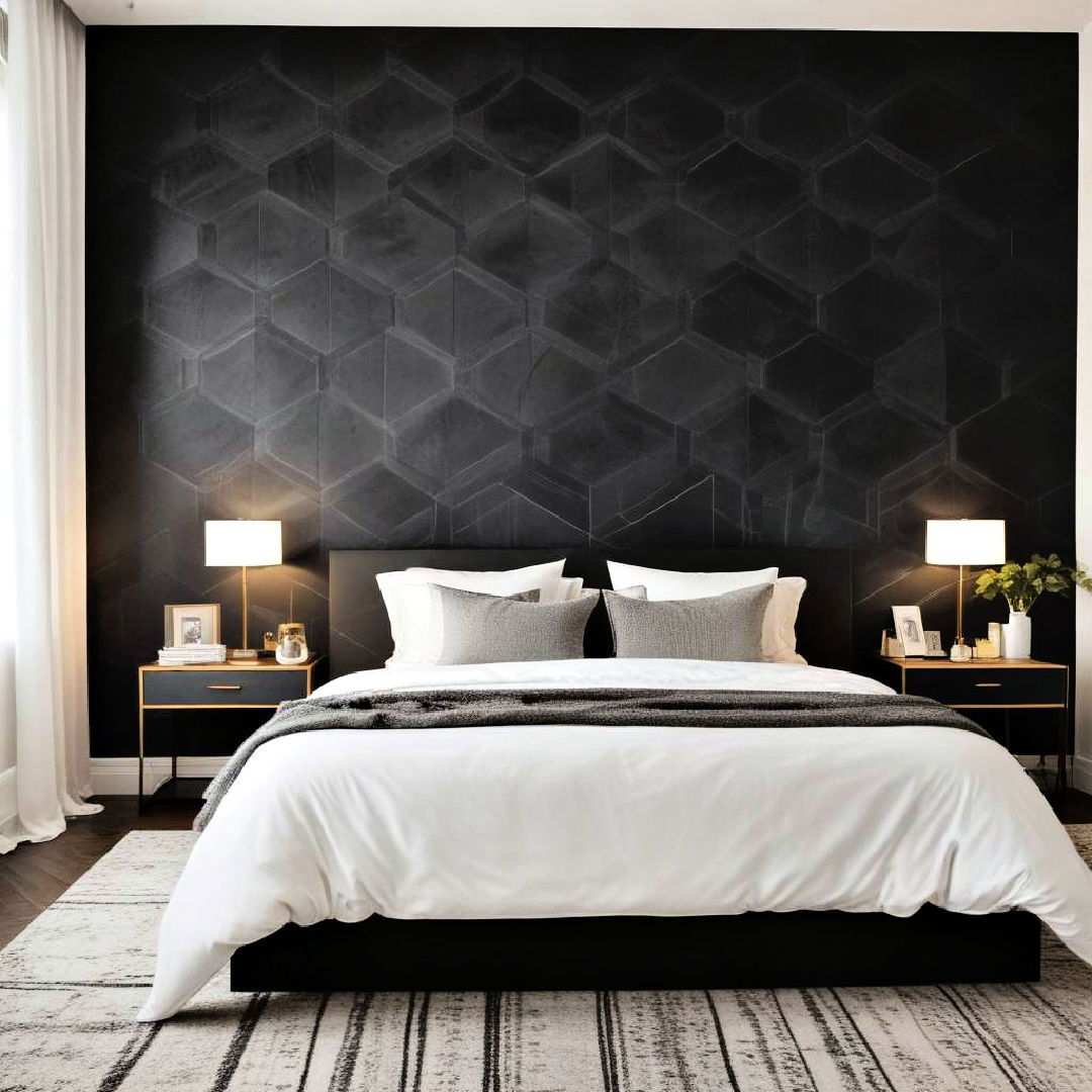 Geometric patterns in black can add a touch of sophistication and modernity to any bedroom. The contrasting shapes and lines create a sense of depth, making the room feel larger and more spacious. This design element is perfect for those who want to incorporate a bit of artistry into their space without overwhelming it. The result is a simple yet effective look that’s sure to impress.