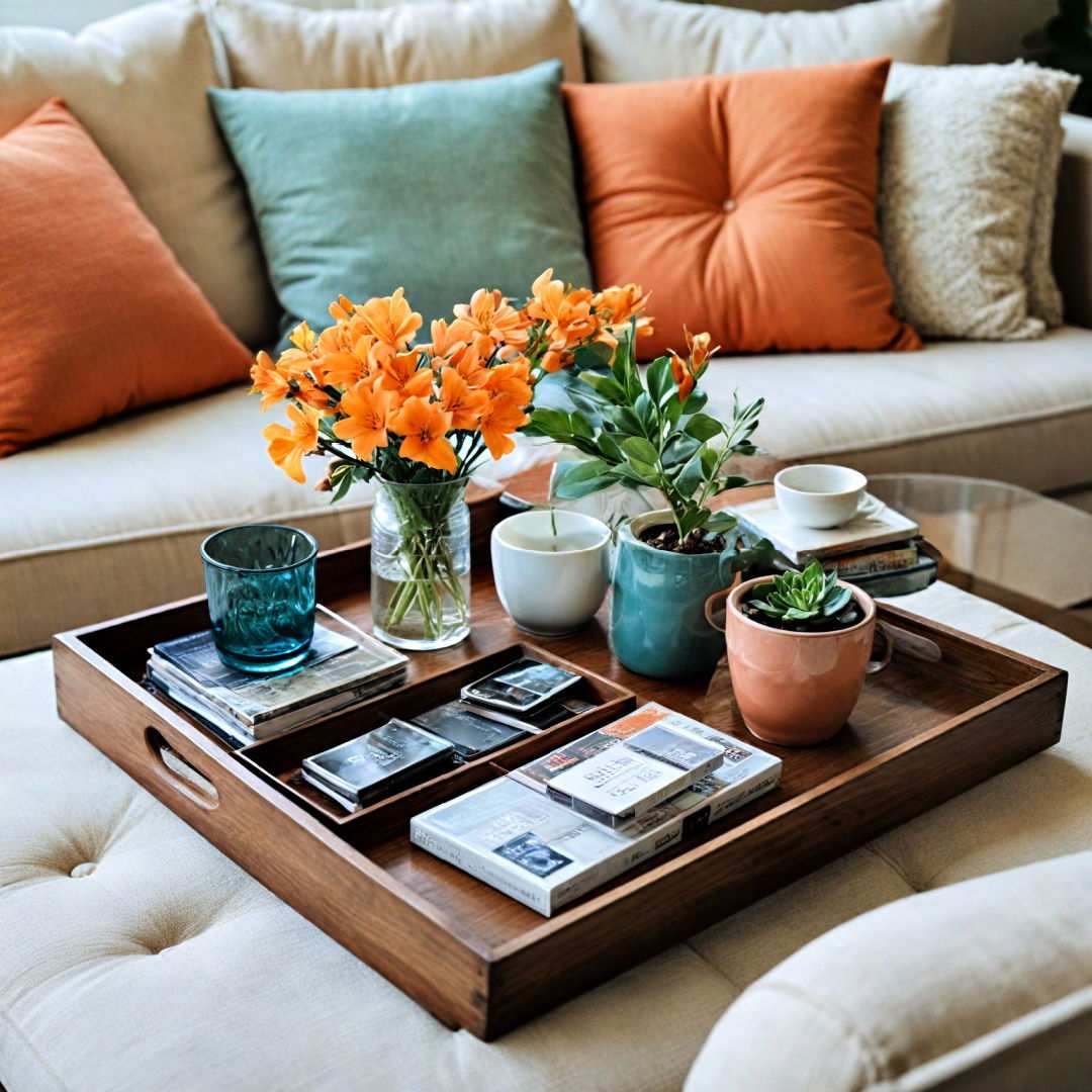 Incorporating geometric shapes can add a modern touch to your coffee table. Think circular bowls on rectangular trays, or a triangular sculpture. These shapes can interact in innovative ways, creating a visually stimulating setup that’s sure to captivate your guests.