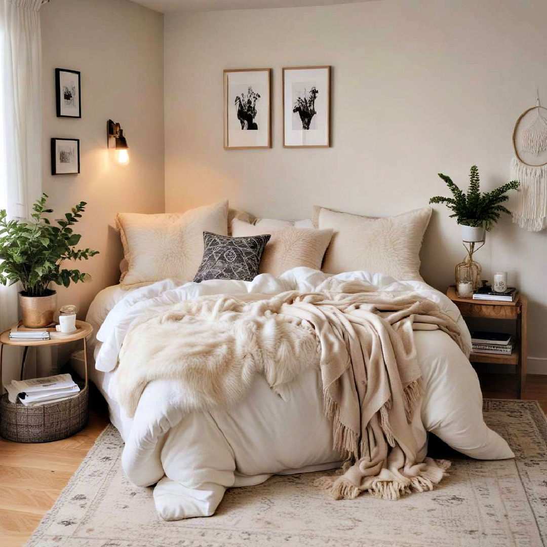 Infuse your bedroom with the carefree essence of boho chic style. Incorporate textures from macramé wall hangings, woven rugs, and plush pillows to create a unique and cozy atmosphere. This eclectic approach to bedroom design brings a sense of adventure and individuality to your sleeping space.