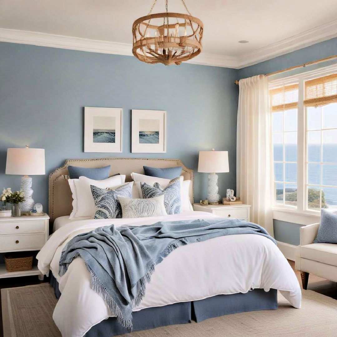 Creating an ocean blue accent wall can instantly transform your bedroom, adding a bold pop of color that maintains the coastal vibe. Choose a deep blue color reminiscent of the sea and paint one wall as a statement piece, drawing the eye and creating a sense of depth in the room.