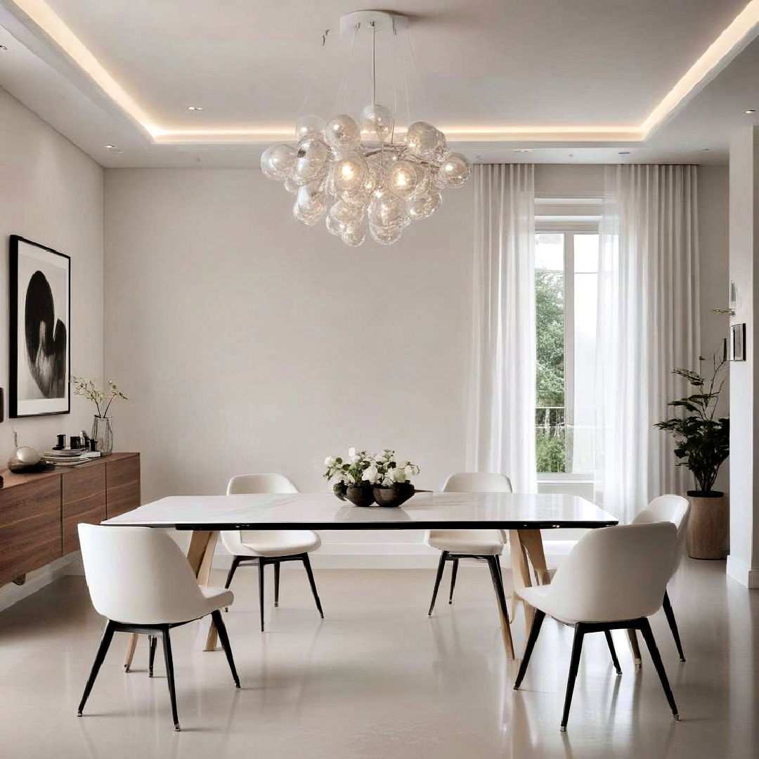 By marrying the raw aesthetic of industrial design with minimalist principles, you create the perfect blend of functionality and style. Exposed pipes, metal surfaces, and unfinished wood give your space a raw, industrial edge, while keeping decor and furniture simple and functional maintains a streamlined look. It’s the ideal setting for a modern, uncluttered dining area that exudes urban sophistication.