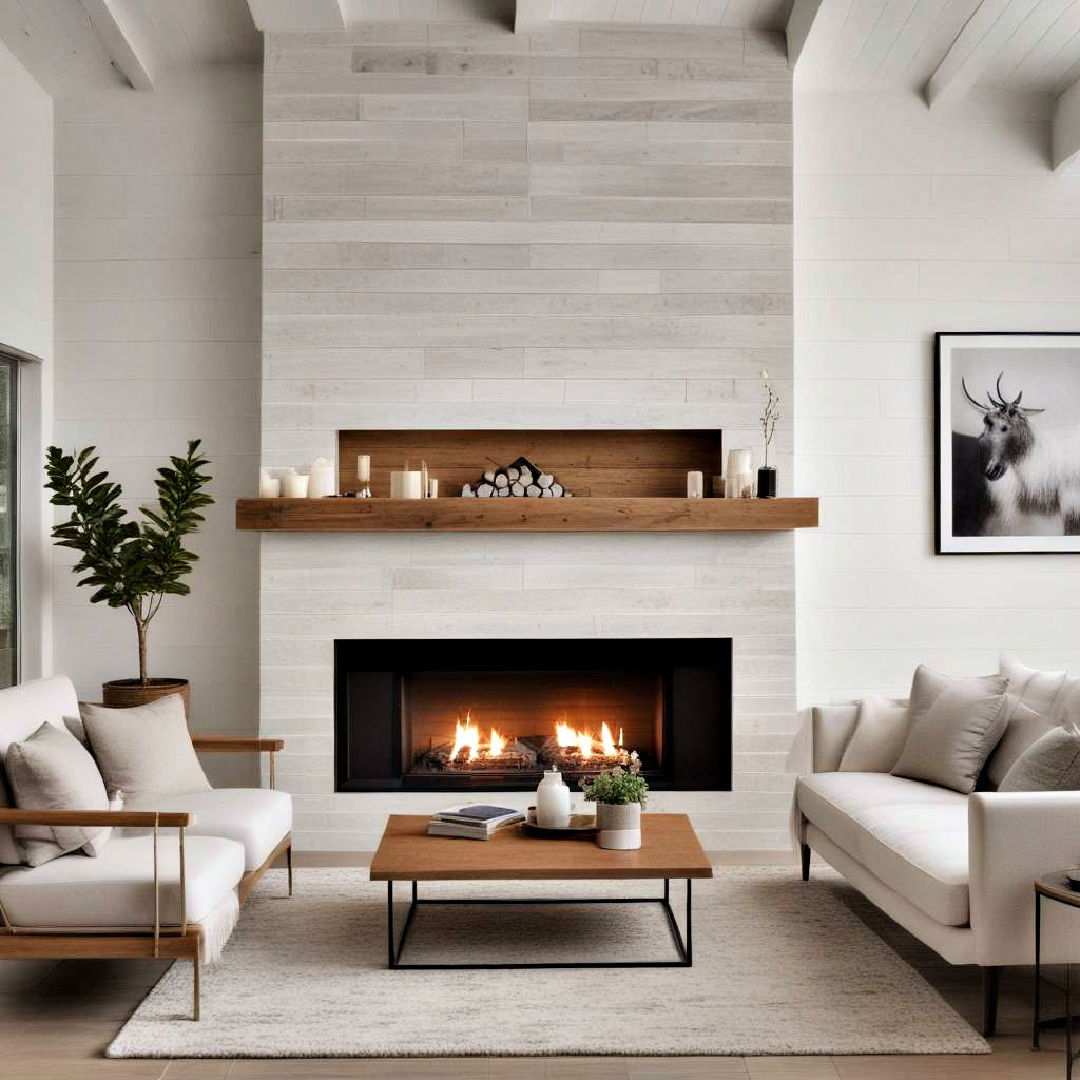 Get inspired by the timeless appeal of a farmhouse shiplap fireplace for a rustic vibe, and take it to the next level by embracing an eclectic style. Mix different colors and finishes of shiplap for a creative and lively decor. Balance your choices with a varied selection of furniture and art to maintain a dynamic yet cohesive atmosphere.