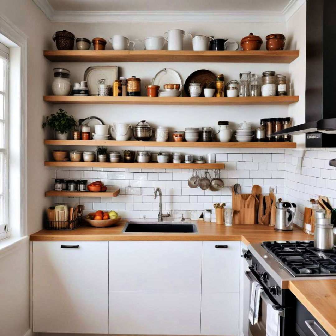 Transform your small kitchen’s storage capacity without sacrificing valuable floor space by leveraging wall shelves. These versatile fixtures provide an easily accessible spot for spices, utensils, and decorative accents. Moreover, they can become a defining feature in your kitchen’s aesthetic, adding a stylish touch that sets the tone for the space. When selecting wall shelves, consider opting for adjustable models to tailor the height to accommodate items of varying sizes.
