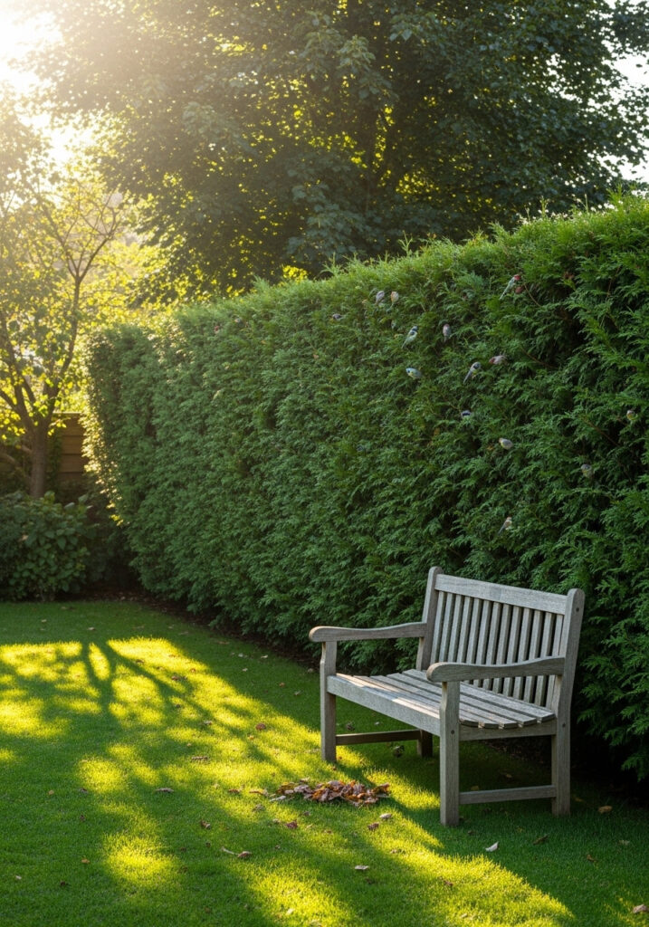 Instead of a traditional fence, a living green wall uses hedges or vertical plantings to create privacy. Options like boxwood, arborvitae, or photinia grow thick enough to serve as natural screens. These eco-friendly fences filter air, reduce noise, and blend seamlessly into garden landscapes.