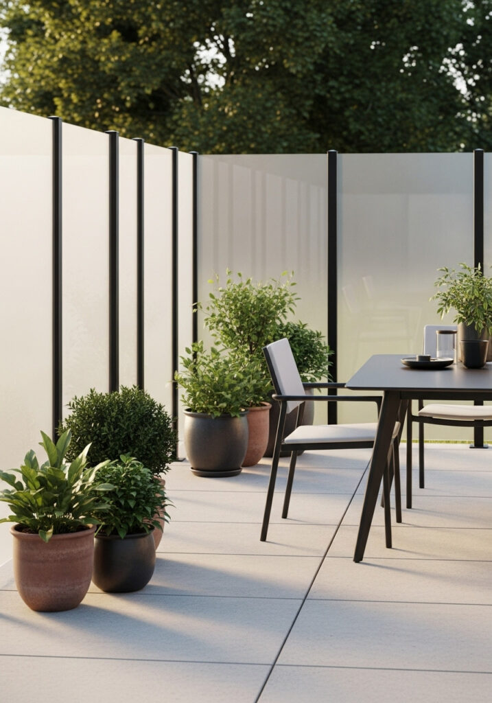 For a sleek, contemporary option, frosted glass panels mounted on metal or wood frames provide privacy while still allowing light. This design works especially well in modern homes with minimalist aesthetics.