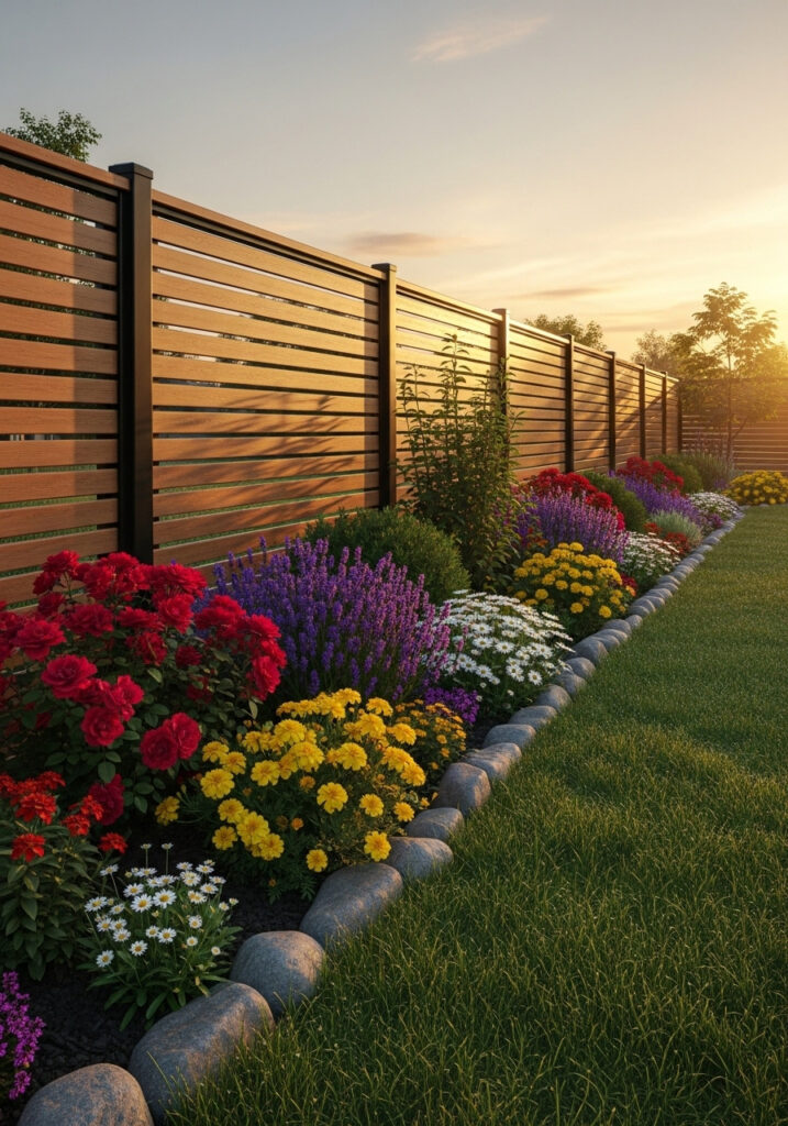 Horizontal slats provide a contemporary twist on traditional fences. Their sleek, clean lines create a modern aesthetic while still offering privacy. Adjusting the spacing between slats controls how much light filters through. Many homeowners combine wood and metal frames for added durability and style.