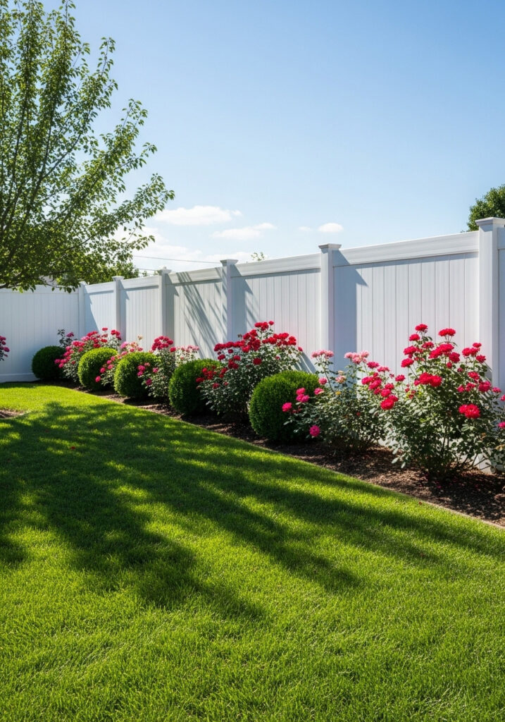 Vinyl is a low-maintenance alternative to wood. It resists rot, pests, and fading, and it requires no painting or sealing. Available in colors ranging from classic white to warm earth tones, vinyl fences mimic wood grain but last longer. Their uniform appearance adds a polished look to any yard.