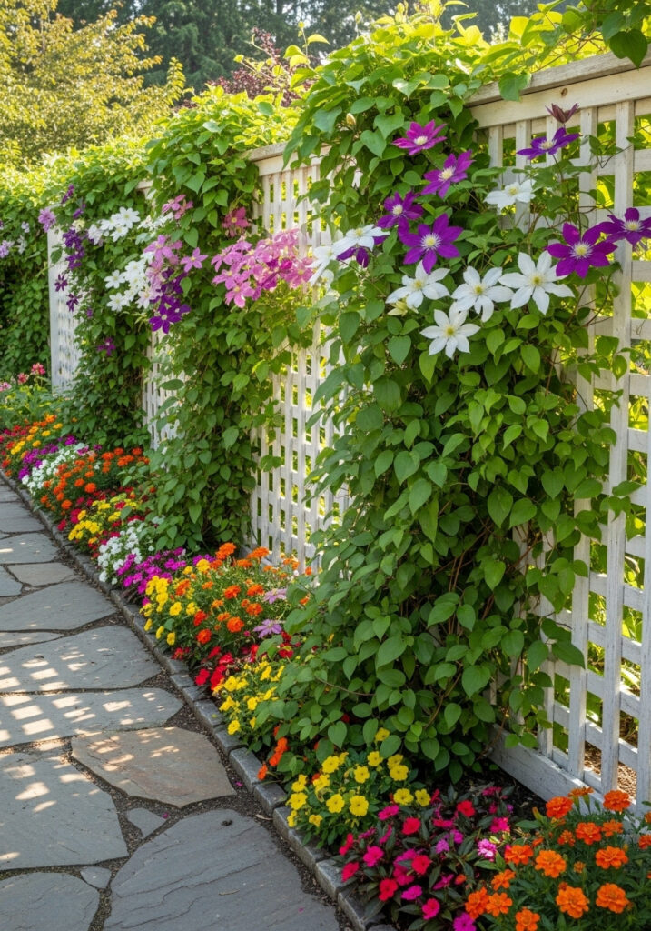 Lattice fences provide partial privacy while doubling as support for vines and climbing plants. Over time, greenery fills the gaps, creating a lush living wall. This option combines charm with function, blending hardscape and landscape seamlessly.
