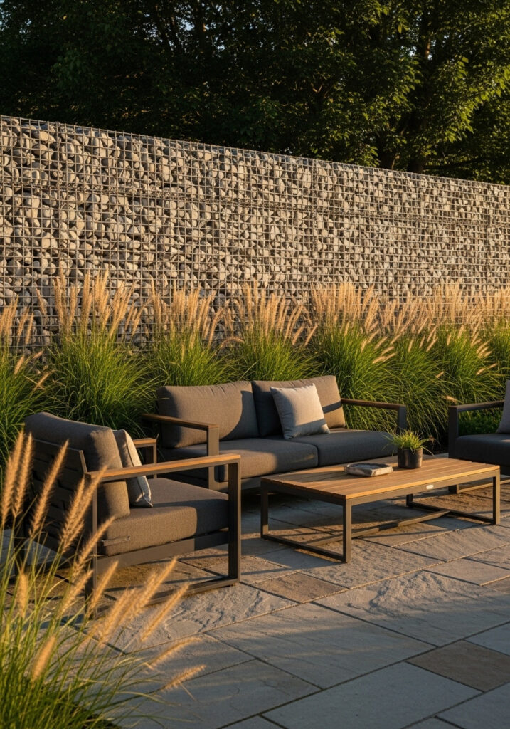 Gabion fences are constructed by filling wire cages with rocks, stones, or even recycled glass. They are extremely durable and provide both sound insulation and privacy. Their rugged, industrial appearance suits modern or minimalist landscapes.